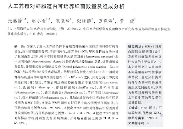 人工養(yǎng)殖對蝦腸道內(nèi)可培養(yǎng)細菌數(shù)量及組成分析