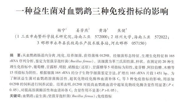 一種益生菌對血鸚鵡三種免疫指標(biāo)的影響