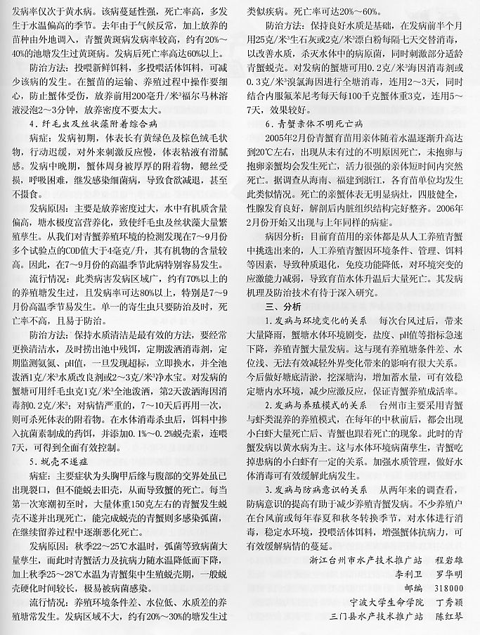 養(yǎng)殖鋸緣青蟹病害的流行病學(xué)調(diào)查研究2