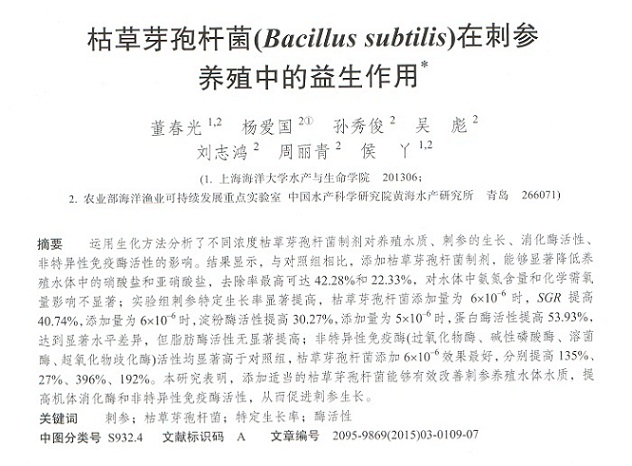 枯草芽孢桿菌(Bacillus subtilis)在刺參養(yǎng)殖中的益生作用