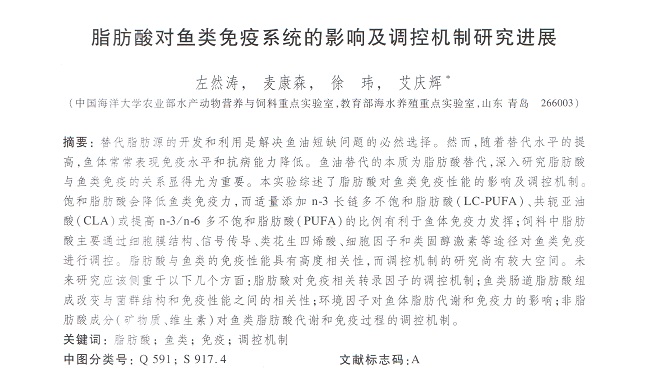 脂肪酸對魚類免疫系統(tǒng)的影響及調(diào)控機(jī)制研究進(jìn)展