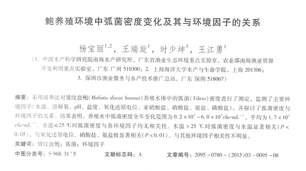 鮑養(yǎng)殖環(huán)境中弧菌密度變化及其與環(huán)境因子的關(guān)系