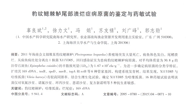 豹紋鰓棘鱸尾部潰爛癥病原菌的鑒定與藥敏試驗(yàn)