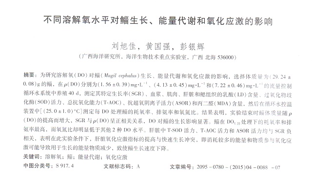 不同溶解氧水平對(duì)鯔生長(zhǎng)、能量代謝和氧化應(yīng)激的影響