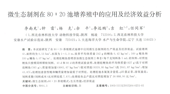 微生態(tài)制劑在80:20池塘養(yǎng)殖中的應(yīng)用及經(jīng)濟(jì)效益分析