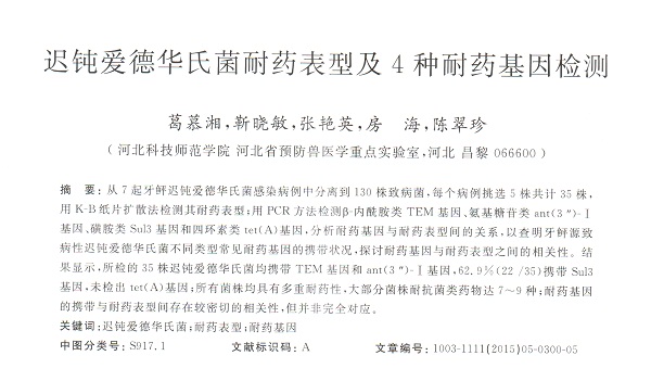遲鈍愛德華氏菌耐藥表型及4種耐藥基因檢測