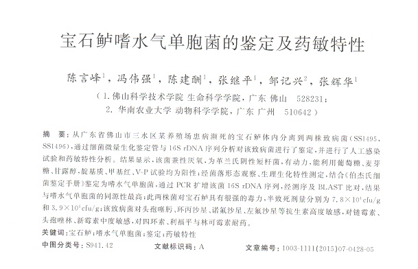 寶石鱸嗜水氣單胞菌的鑒定及藥敏特性