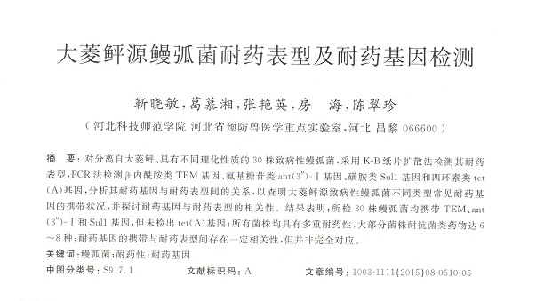 大菱鲆源鰻弧菌耐藥表型及耐藥基因檢測(cè)