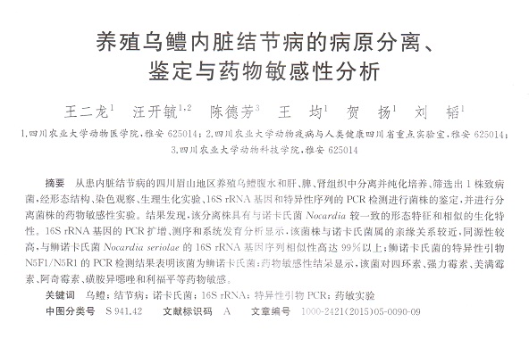 養(yǎng)殖烏鱧內(nèi)臟結(jié)節(jié)病的病原分離、鑒定與藥物敏感性分析