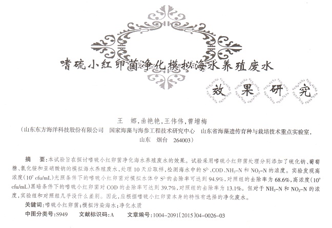 嗜硫小紅卵菌凈化模擬海水養(yǎng)殖廢水效果研究