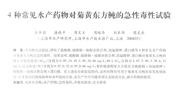 4種常見(jiàn)水產(chǎn)藥物對(duì)菊黃東方鲀的急性毒性試驗(yàn)