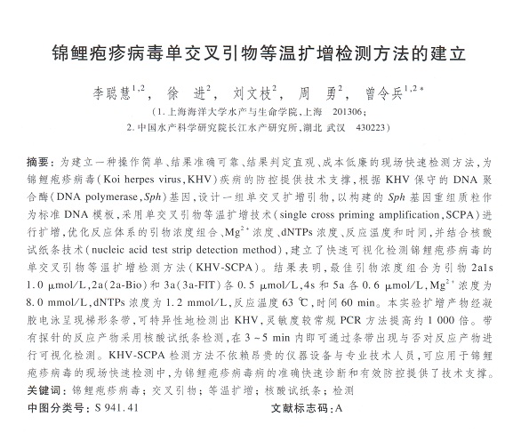 錦鯉皰疹病毒單交叉引物等溫擴增檢測方法的建立