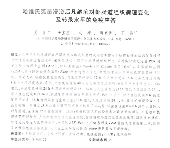 哈維氏弧菌浸浴后凡納濱對蝦腸道組織病理變化及轉(zhuǎn)錄水平的免疫應答
