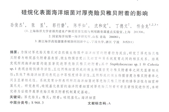 硅烷化表面海洋細(xì)菌對(duì)厚殼貽貝稚貝附著的影響