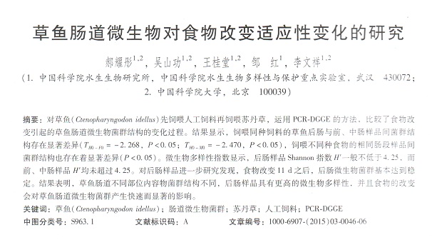 草魚腸道微生物對(duì)食物改變適應(yīng)性變化的研究