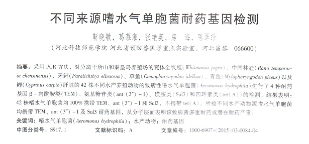 不同來源嗜水氣單胞菌耐藥基因檢測