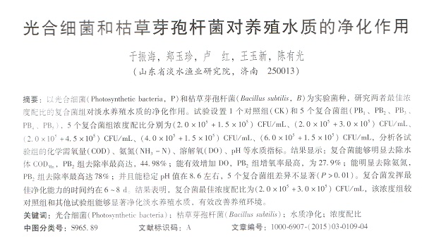 光合細(xì)菌和枯草芽孢桿菌對養(yǎng)殖水質(zhì)的凈化作用