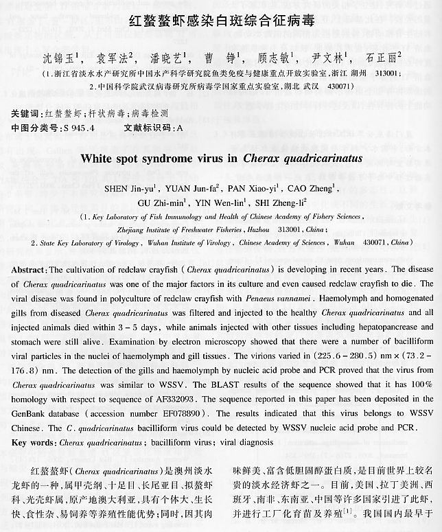 紅螯螯蝦感染白斑綜合征病毒1