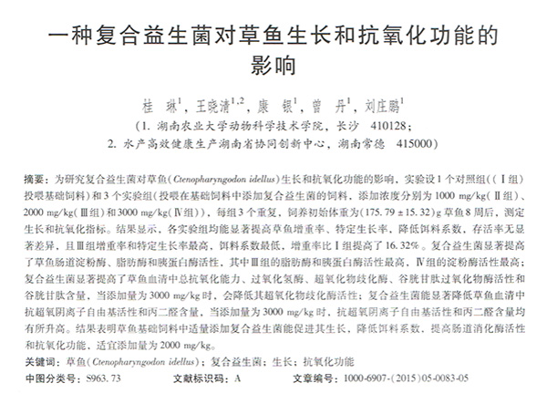 一種復合益生菌對草魚生長和抗氧化功能的影響