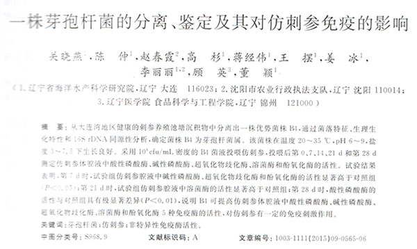 一株芽孢桿菌的分離、鑒定及其對仿刺參免疫的影響