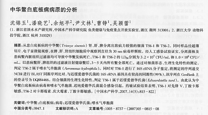 中華鱉白底板病病原的分析