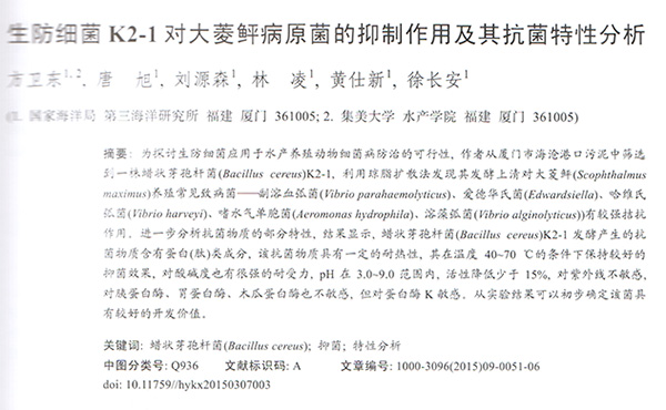 生防細(xì)菌K2-1對大菱鲆病原菌的抑制作用及其抗菌特性分析