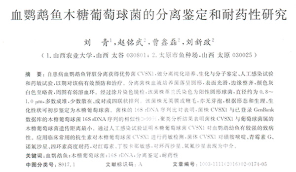 血鸚鵡魚木糖葡萄球菌的分離鑒定和耐藥性研究