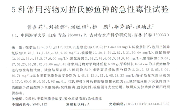 5種常見藥物對拉氏鱥魚種的急性毒性試驗