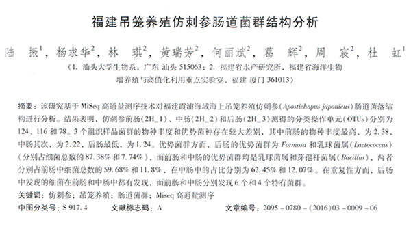 福建吊籠養(yǎng)殖仿刺參腸道菌群結(jié)構(gòu)分析