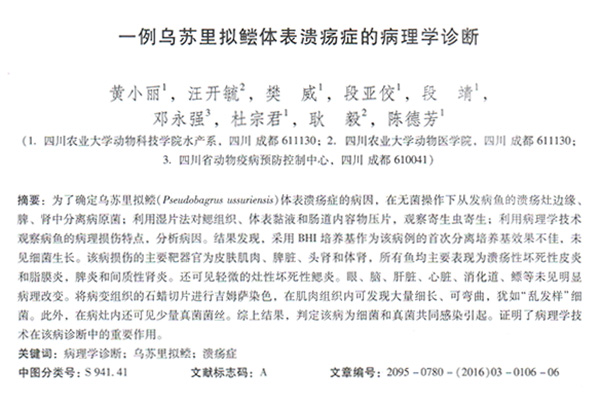 一例烏蘇里擬鲿體表潰瘍癥的病理學(xué)診斷