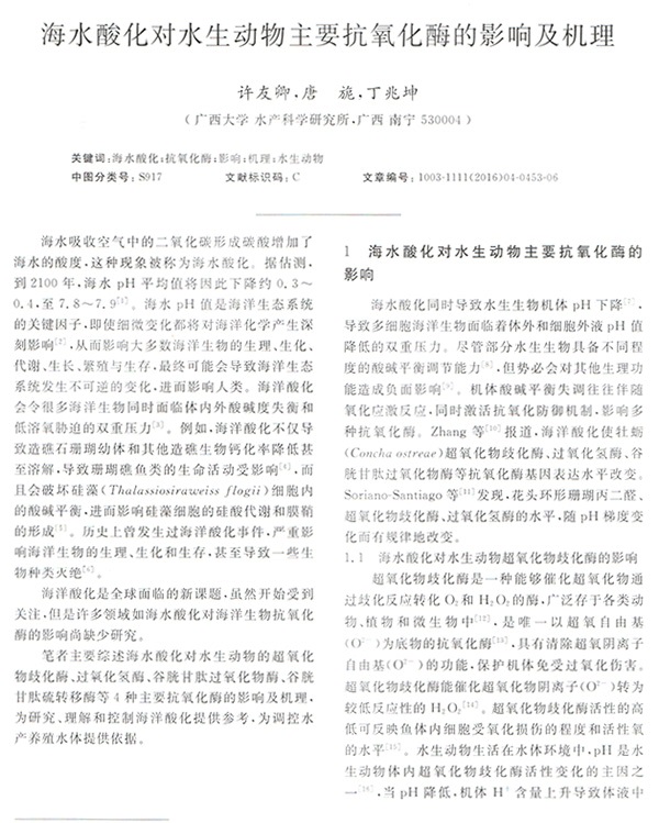 海水酸化對(duì)水生動(dòng)物主要抗氧化酶的影響及機(jī)理