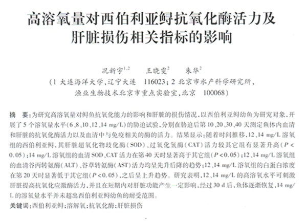 高溶氧量對(duì)西伯利亞鱘抗氧化酶活力及肝臟損傷相關(guān)指標(biāo)的影響