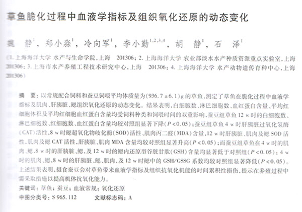 草魚脆化過程中血液學指標及組織氧化還原的動態(tài)變化