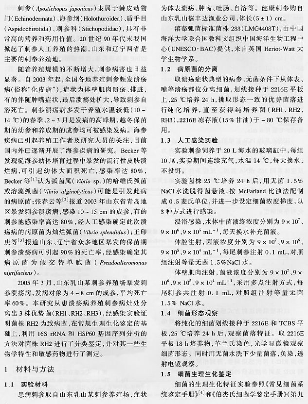 養(yǎng)殖刺參潰瘍病病原菌RH2的鑒定及其生物學(xué)特征分析2