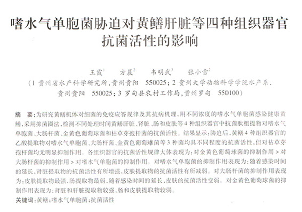 嗜水氣單胞菌脅迫對黃鱔肝臟等四種組織器官抗菌活性的影響