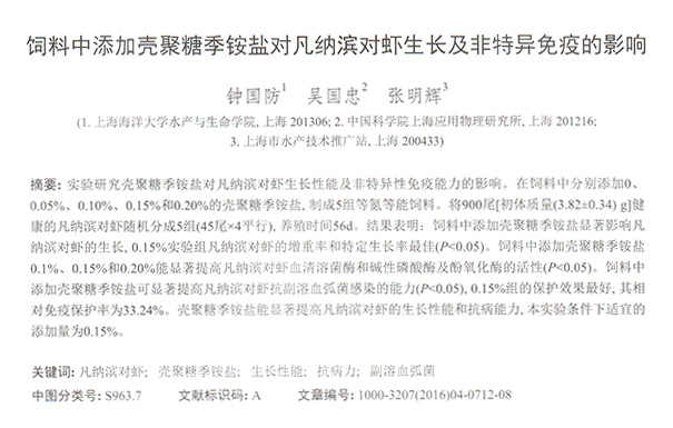 飼料中添加殼聚糖季銨鹽對凡納濱對蝦生長及非特異免疫的影響