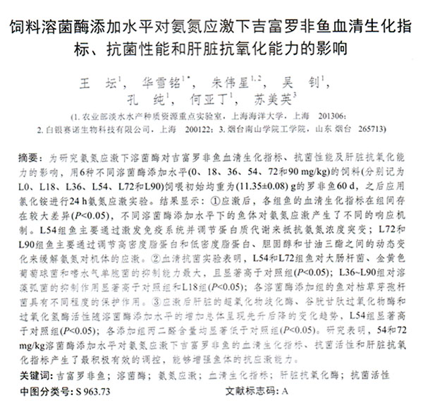 飼料溶菌酶添加水平對(duì)氨氮應(yīng)激下吉富羅非魚(yú)血清生化指標(biāo)、抗菌性能和肝臟抗氧化能力的影響