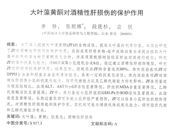 大葉藻黃酮對酒精性肝損傷的保護作用