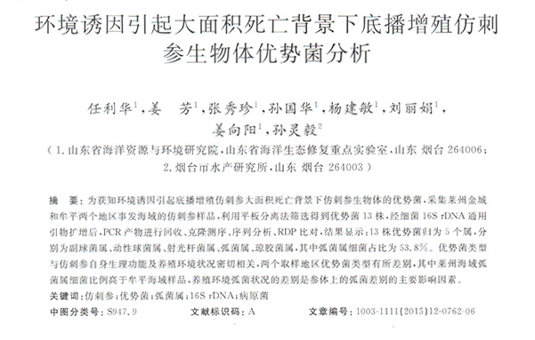 環(huán)境誘因引起大面積死亡背景下底播增殖仿刺參生物體優(yōu)勢(shì)菌分析