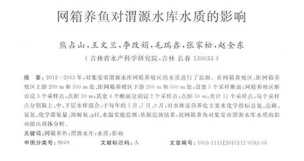 網(wǎng)箱養(yǎng)魚對渭源水庫水質的影響
