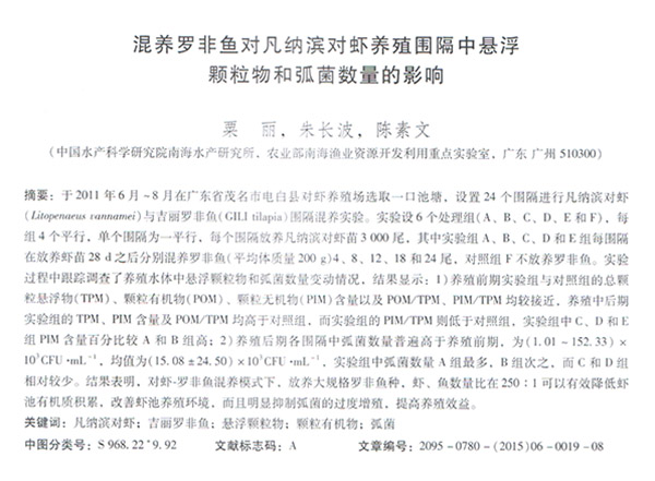 混養(yǎng)羅非魚對凡納濱對蝦養(yǎng)殖圍隔中懸浮顆粒和弧菌數(shù)量的影響