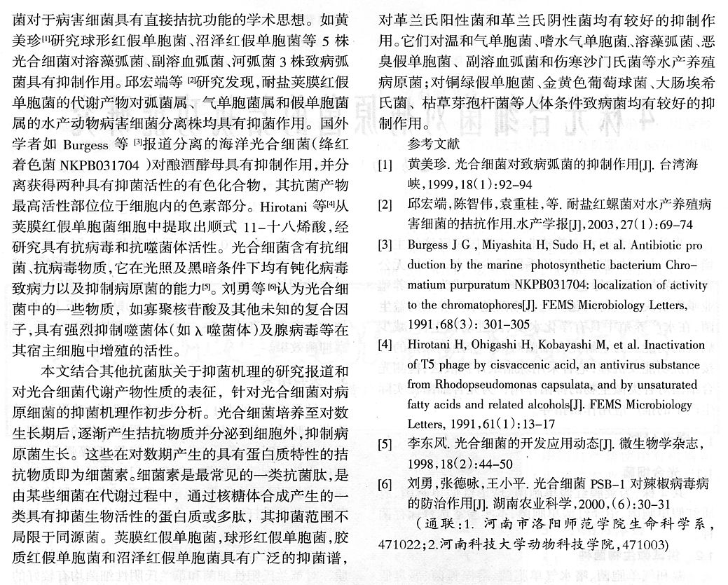 4株光合細(xì)菌對(duì)病原菌的拮抗功能研究2