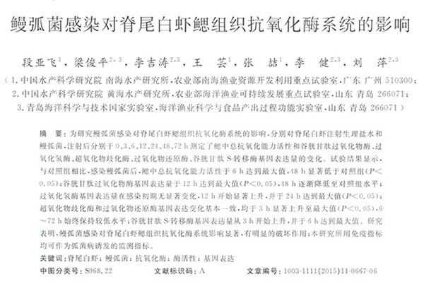 鰻弧菌感染對脊尾白蝦鰓組織抗氧化酶系統(tǒng)的影響