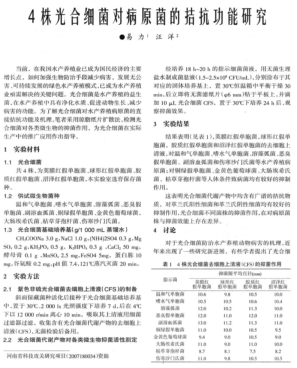 4株光合細(xì)菌對病原菌的拮抗功能研究1