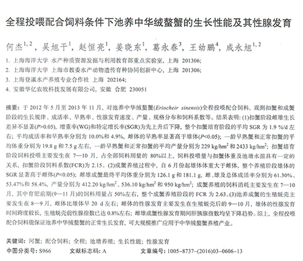 全程投喂配合飼料條件下池養(yǎng)中華絨螯蟹的生長(zhǎng)性能及其性腺發(fā)育