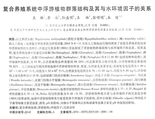 復(fù)合養(yǎng)殖系統(tǒng)中浮游植物群落結(jié)構(gòu)及其與水環(huán)境因子的關(guān)系