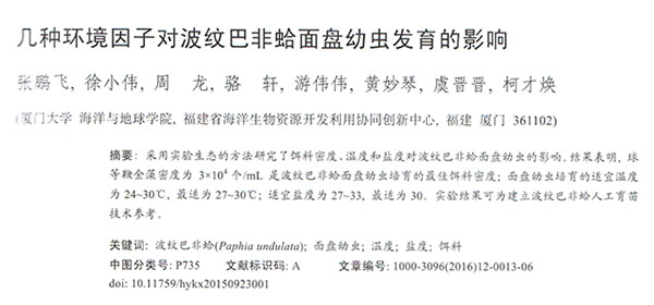 幾種環(huán)境因子對波紋巴非蛤面盤幼蟲發(fā)育的影響