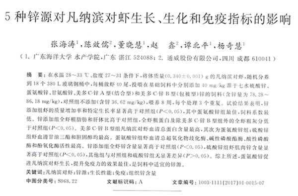 5種鋅源對凡納濱對蝦生長、生化和免疫指標(biāo)的影響