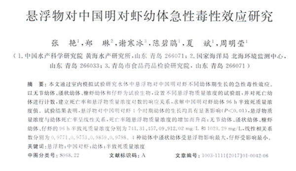 懸浮物對(duì)中國明對(duì)蝦幼體急性毒性效應(yīng)研究