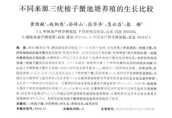 不同來源三疣梭子蟹池塘養(yǎng)殖的生長比較